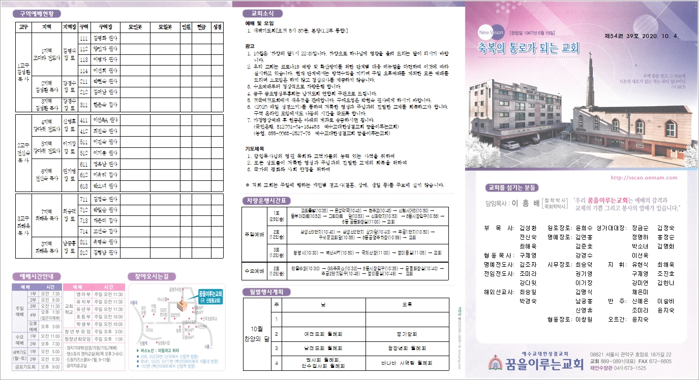2020년 10월 4일 주보 입니다.